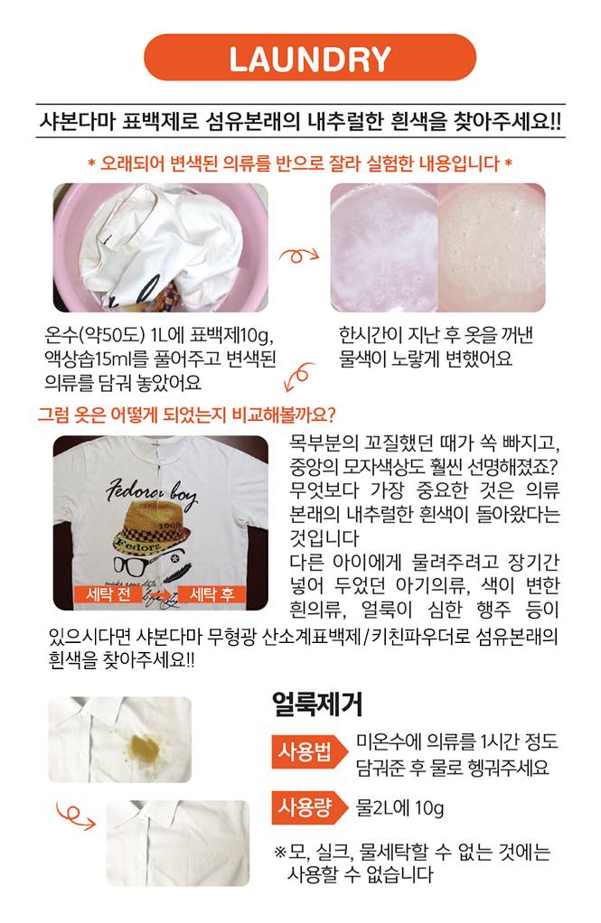 ¡Ü»îÀ½¼¼Å¹ : ¹°5¸®ÅÍ´ç 10g(ÇѽºÇ¬)À» ¼¼Å¹¼Ù°ú ÇÔ²² ³Ö°í »î¾ÆÁÝ´Ï´Ù.