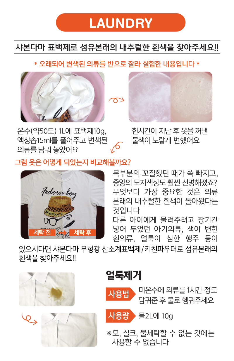 ¡Ü»îÀ½¼¼Å¹ : ¹°5¸®ÅÍ´ç 10g(ÇѽºÇ¬)À» ¼¼Å¹¼Ù°ú ÇÔ²² ³Ö°í »î¾ÆÁÝ´Ï´Ù.